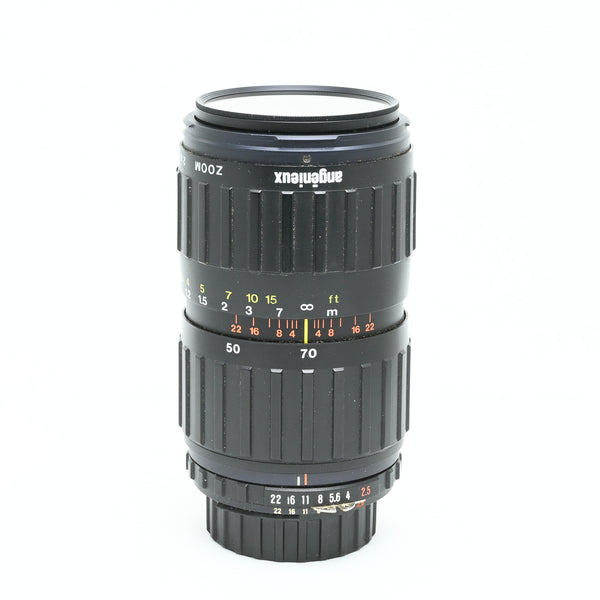 Angenieux 35-70mm lens in good working order and very clean glass. This is Nikon mount. Quite rare and fairly desirable. This lens is know for it's amazing image quality. Comes with caps, hood, filter, and display box. Manual focus lens.