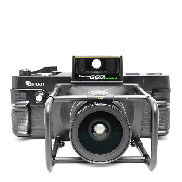 Fuji G617 in amazing condition. Rarely used and fully tested. All shutter speeds accurate and glass is minty. Comes with original metal carry case, hood, front cap, strap and the very rare centre ND filter.